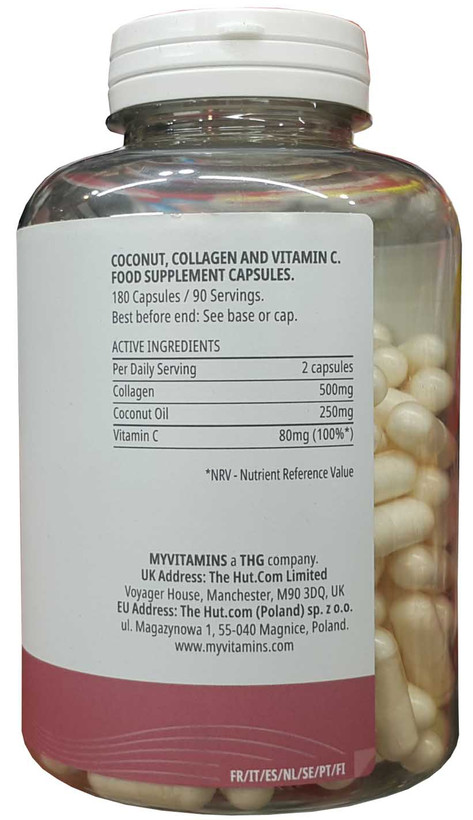 قرص کوکونات کلاژن مای ویتامینز بهطور اختصاصی از موادی نظیر: عصاره روغن نارگیل، کلاژن (ماهی)، ژلاتین، اسید اسکوربیک، منیزیم و سیلیکا ساخته شده که وضعیت پوست، مو و ناخنهای شما را بهطور محسوسی بهبود میبخشد.