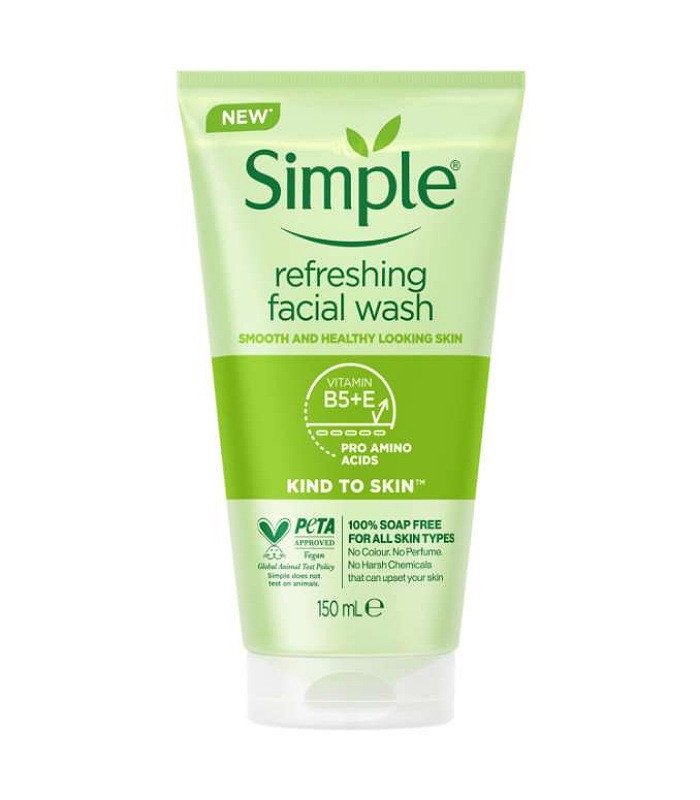 ژل شستشو مدل refreshing از برند محبوب سیمپل،دارای فرمولاسیون بسیار ملایم و غیر صابونی بوده و فاقد هرگونه ترکیبات حساسیت زا در ساختار خود می باشد. به همین دلیل مناسب برای تمامی پوست ها حتی پوست های حساس می باشد.این فیس واش دارای پروویتامینB ،ویتامین E و آب تصفیه شده و دارای ترکیبات مرطوب کننده در ساختار خود می باشد. به همین دلیل از خشکی پوست هم جلوگیری کرده و روند پیری پوست را به تعویق می اندازد.